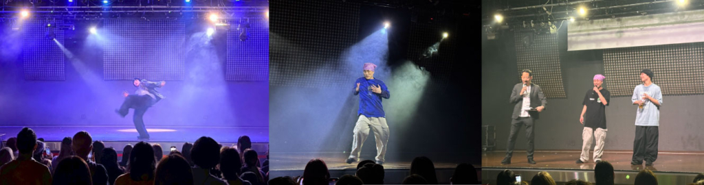 D.LEAGUEの大舞台とは異なり、観客との距離はわずか数メートル。息遣い、床を踏む音、身体がぶつかる衝撃まで伝わるパフォーマンスは、“観る”を超えて“体感する”ショーケースとして、会場を圧倒しました。